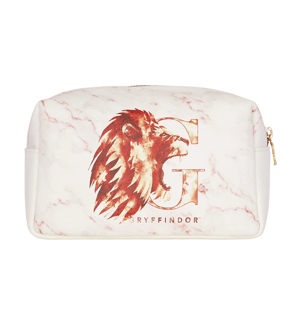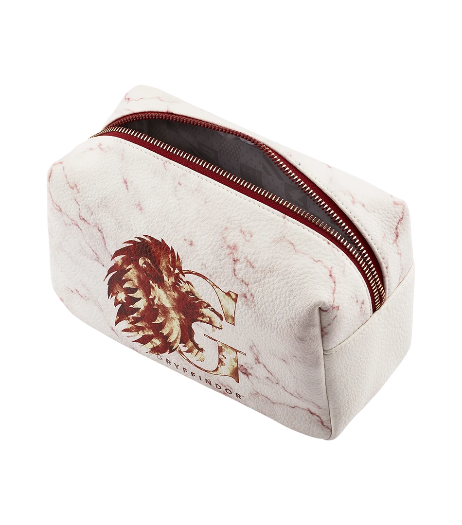 Inspired by Gryffindor house pride is this unique Gryffindor Makeup Bag. The bag features a white and red marble effect in a PU leather material and is complete with a gold zip detailing the Gryffindor house crest.