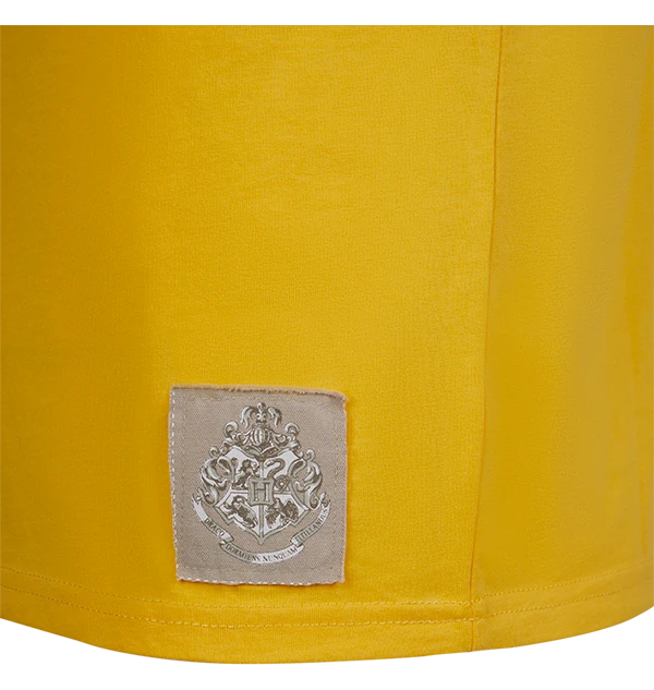 Join the Hufflepuff Quidditch team with this Hufflepuff Quidditch Team Captain t-shirt. The t-shirt is a yellow colour, the traditional colour of the Hufflepuff house, and features a raised flock print design across the chest in grey of the Hufflepuff house crest, a badger.