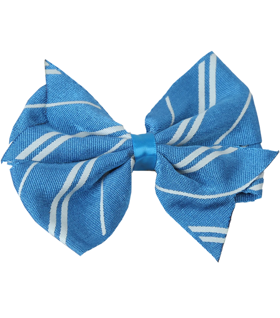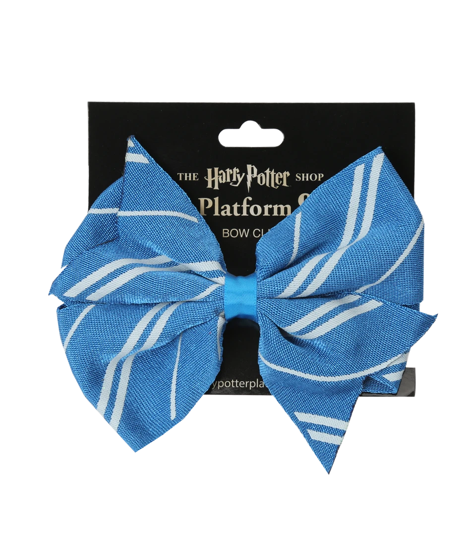 A beautiful bow clip in the traditional Ravenclaw house colours of blue and grey. Features a clip on the reverse of the bow to fasten into place. Bow clip measures approximately 11cm x 9cm.