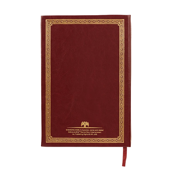 Any proud Gryffindor would be pleased to have this vintage look faux-leather notebook in their home study! This burgundy red journal features an impressive metal Gryffindor house crest on the front cover, and gold foiled detailing near the border’s edge.