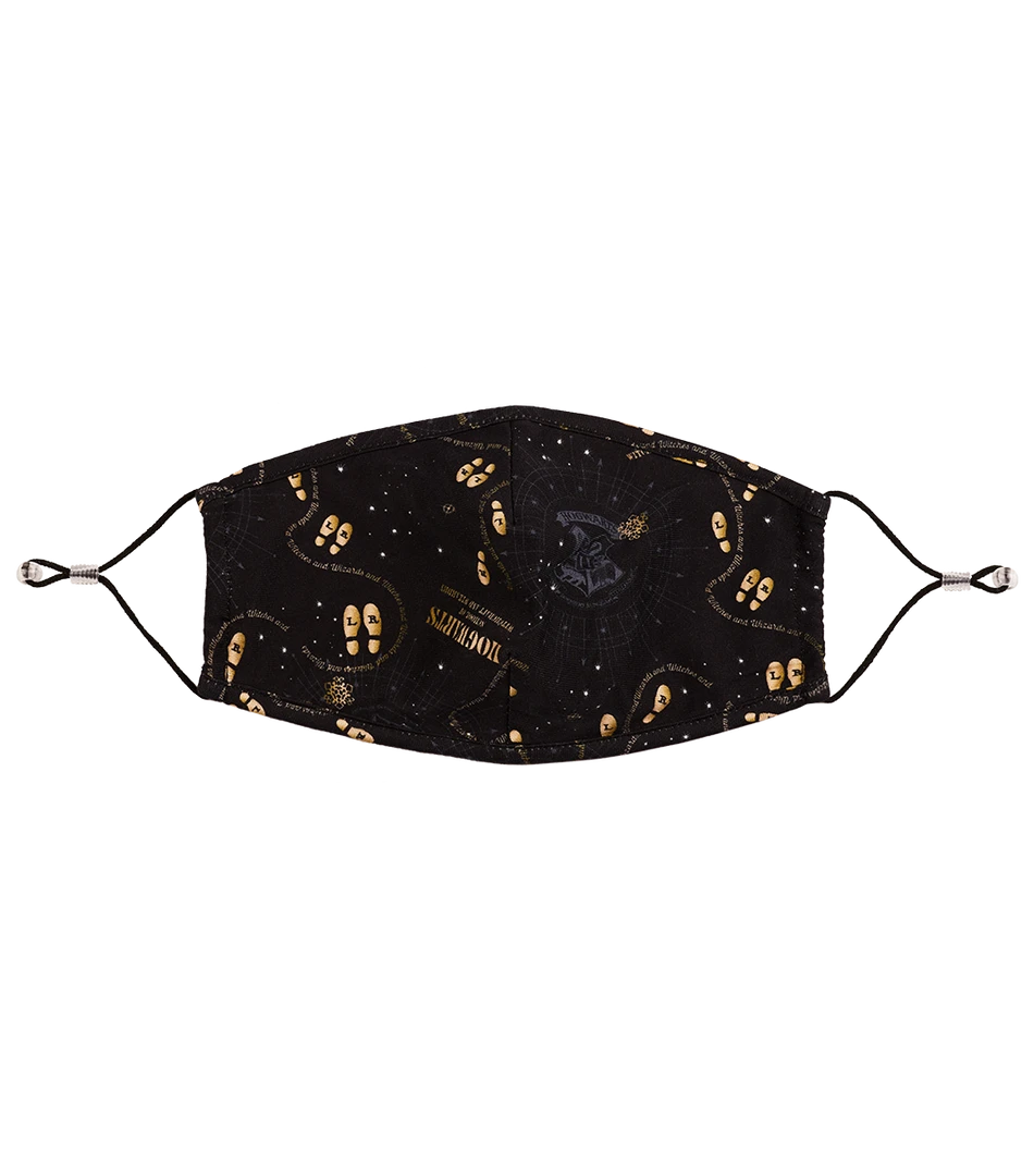 One mask includes a Marauder’s Map design on a black background, and the other is made up of bespoke designs of a broomstick, journal, and Harry Potter’s iconic glasses on a navy background. The masks include an adjuster and stopper, for a better and more comfortable fit.
