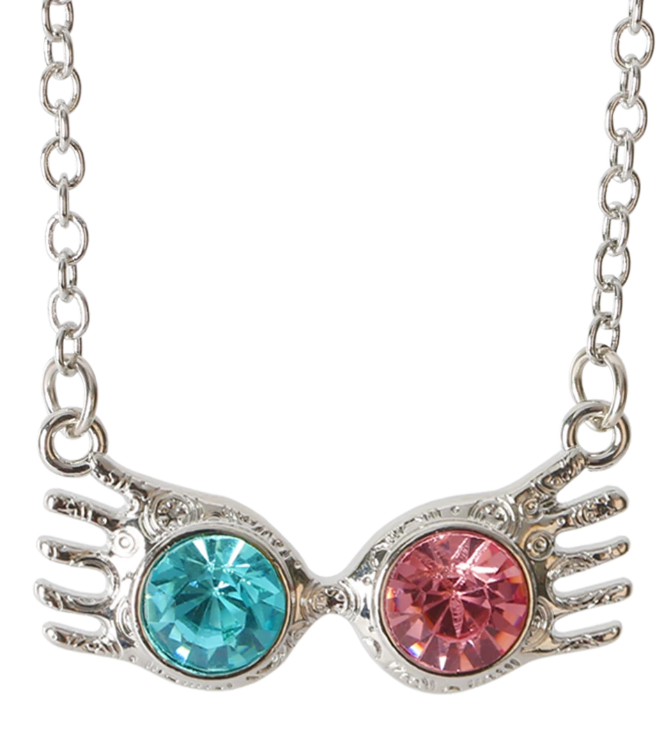 Take home this unique Luna’s Spectrespecs necklace featuring a pendant of Luna’s iconic Spectrespecs. The ‘exceptionally ordinary’ necklace is made of zinc alloy and is complete with stunning blue and pink acrylic stones.