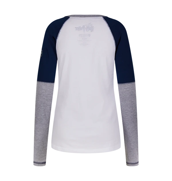 Let everyone know your affiliation with Ravenclaw house by wearing this ladiesā cut raglan shirt. This white adult top features a unique dual tone of grey and navy blue along the sleeves, whilst the Ravenclaw house crest can be seen printed on the left shoulder. āRAVENCLAWā is emblazoned in caps across the front in a sporty style font.