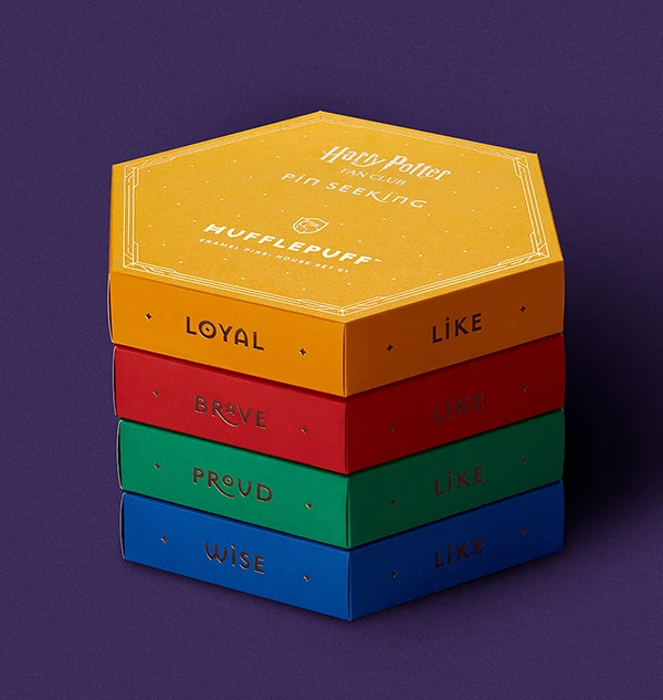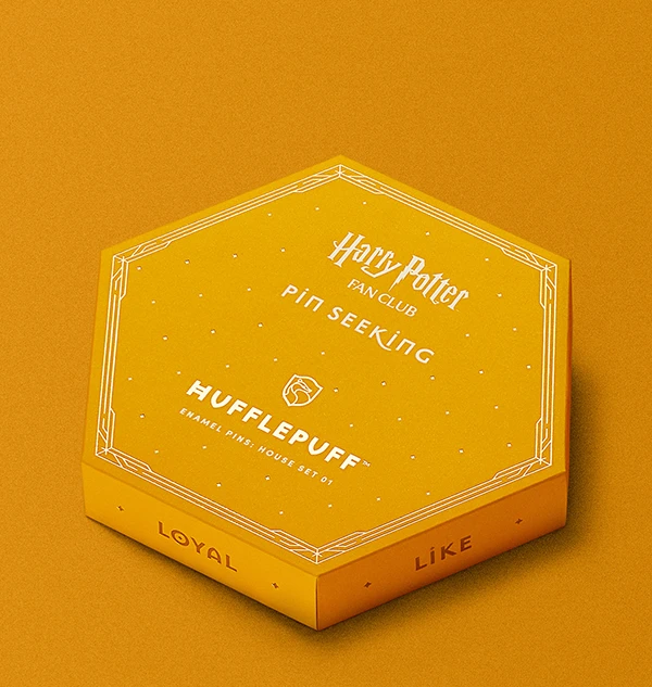 This yellow and black, 6 piece Second Edition Hufflepuff Enamel Pins Set is part of the Harry Potter Fan Club Pin Seeking collection and features a rare pin that can only be obtained as part of this set. The box is fitted with magnets so you can connect your box with other box sets as you grow your pin collection!