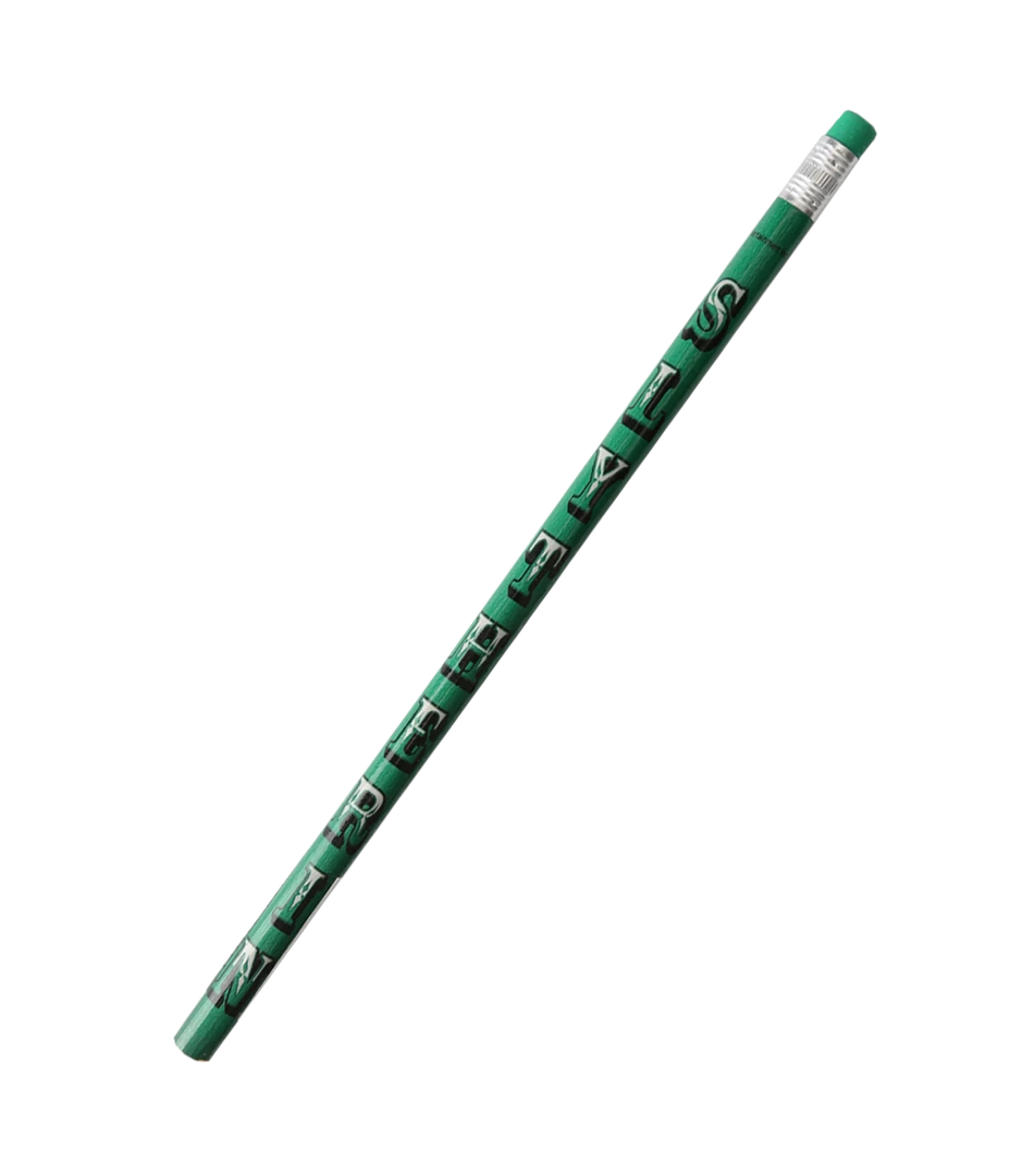 Make your mark with this deluxe singular grey lead Slytherin pencil, an essential item for any Harry Potter fan. This unique pencil is designed with traditional Slytherin house colours, in emerald green and silver and features the name of the house running along the side.