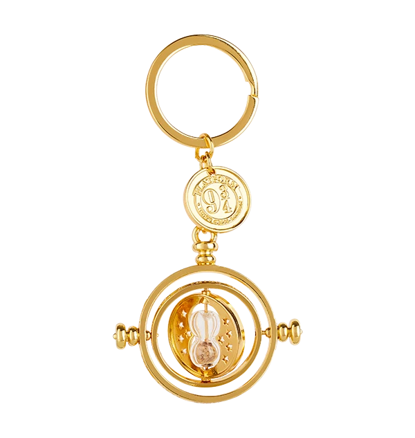 A beautifully constructed replica of Hermione’s Time-Turner, now on a keyring. This fully articulated exclusive keyring spins much like Hermione’s necklace did in the Harry Potter film series and provides a fine detail for any true fan to appreciate. In addition, the keyring also contains real sand granules which move when turned. A Platform 9 ¾ charm can be seen hanging prominently from the ring and offers an additional element to be enjoyed. The perfect addition to any witch or wizard’s Harry Potter collection!