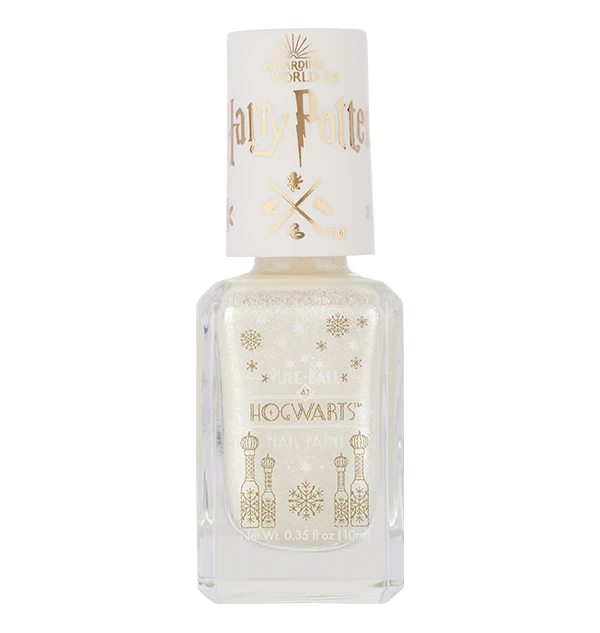 Be the belle of the Yule Ball in this icy white, crushed, metallic nail polish! Part of the Yule Ball cosmetics collection, this nail varnish dries to a dramatic snowy sparkle, and comes in unique exclusive packaging featuring snowflakes and the Hogwarts castle.
